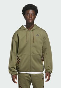 HOODIE - Sweater met rits - olive strata lucid orange