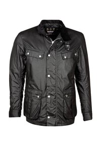 DUKE is de zwarte, water- en winddichte gewaxte jas in bikerstijl van Barbour. De fijne corduroy kraag, aangebrachte en geïntegreerde zakken, evenals de verborgen 2-weg rits brengen bewezen comfort en zeer gewaardeerd traditioneel design naar de garderobe, met langdurige kwaliteit.
