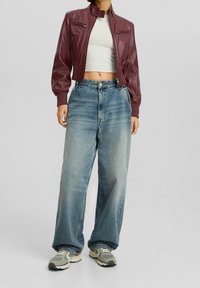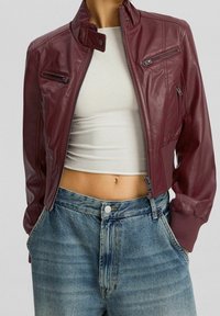 BershkaPre-owned Imitatieleren jas - bordeaux