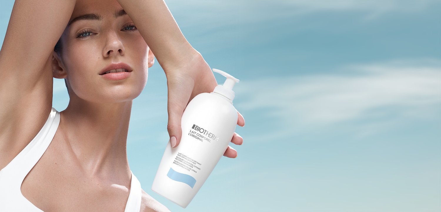 De Lait Corporel bodylotion van Biotherm voedt de huid van top tot teen.