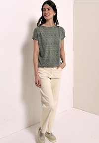 SHIRT IM AUSBRENNER-LOOK MIT BOATNECK - T-shirt print - khaki melange