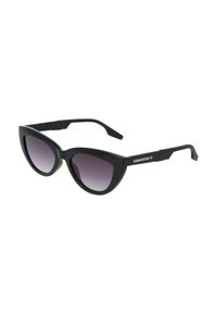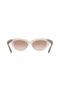 Cat-eye zonnebril met doorschijnende beige monturen en gradient bruine glazen, met het Converse-logo op het slaapstuk.