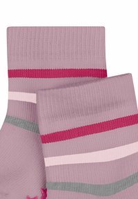 Plush house socks made of particularly skin-flattering, easy-care and sustainable cotton; FALKE – WE CARE – COTTON: resource-saving, socially responsible, traceable; Colour-coordinating stripes positioned on the shaft; With printed nubs on the sole for improved grip; FALKE Perfect Fit
