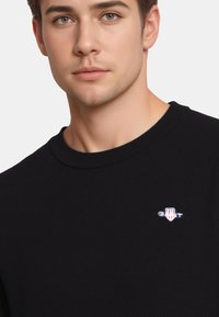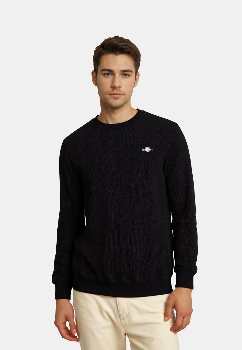 MIT RUNDHALS - MICRO TEXTURED C-NECK - Trui - schwarz