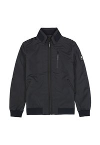 Olijfgroene bomberjack met een opstaande kraag, ritssluiting aan de voorkant en zijzakken. Voorzien van subtiele logo-accenten en geribbelde manchetten.