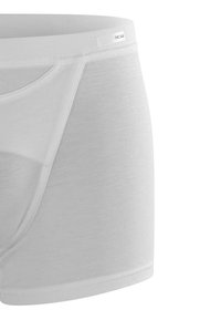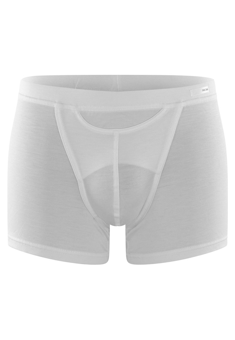 Witte boxershorts voor mannen met een gevormd voorvak en een klein merkembleem aan de rechterkant van de tailleband.