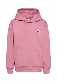 Twee kinderen die bijpassende zwarte hoodies en broeken dragen met een klein wit logo, staand tegen een effen lichte achtergrond.