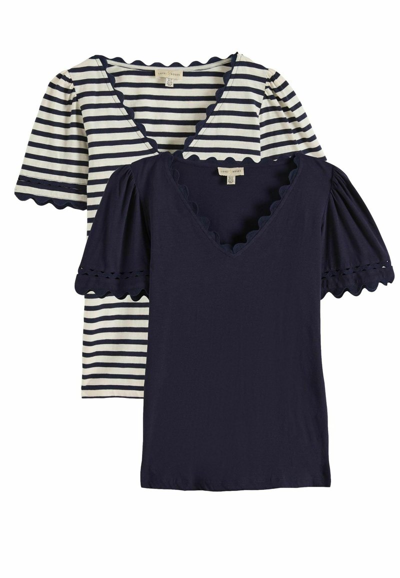 REGULAR FIT - T-SHIRT 2PACK - T-shirt print - navy blue and stripe