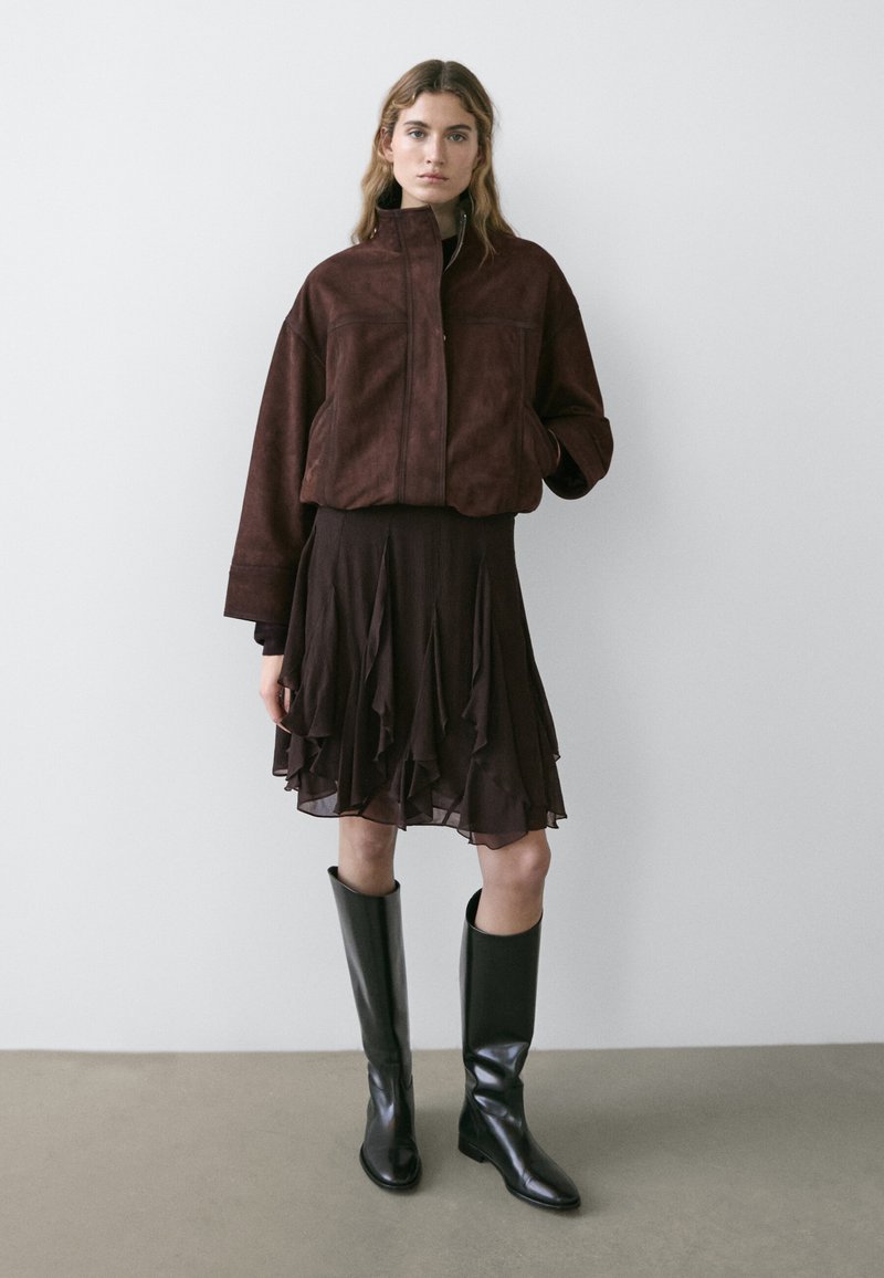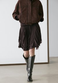 ASYMMETRIC FRILLED - Minirok - dark brown
