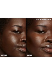 Breng langs de contouren van het gezicht aan: onder de jukbeenderen, aan de zijkanten en het puntje van je neus, bij de haarlijn en op je kin. Masseer in de huid met je vingertoppen, een kwast of een spons. Opbouwen naar de gewenste intensiteit.