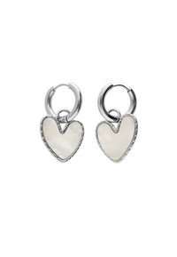 Gouden hoorig met een hartvormige charme van witte parelmoer. Glad oppervlak met een dunne, verhoogde randafwerking.