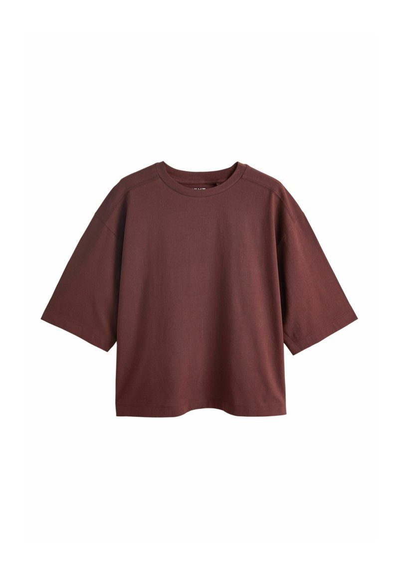 RELAXED BOXY ELBOW LENGTH CREW NECK - T-shirt basic - chocolate brown