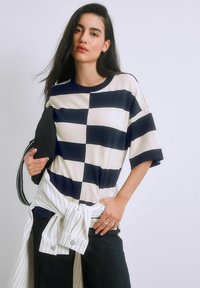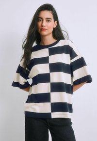 CREW NECK - T-shirt basic - navy white stripe