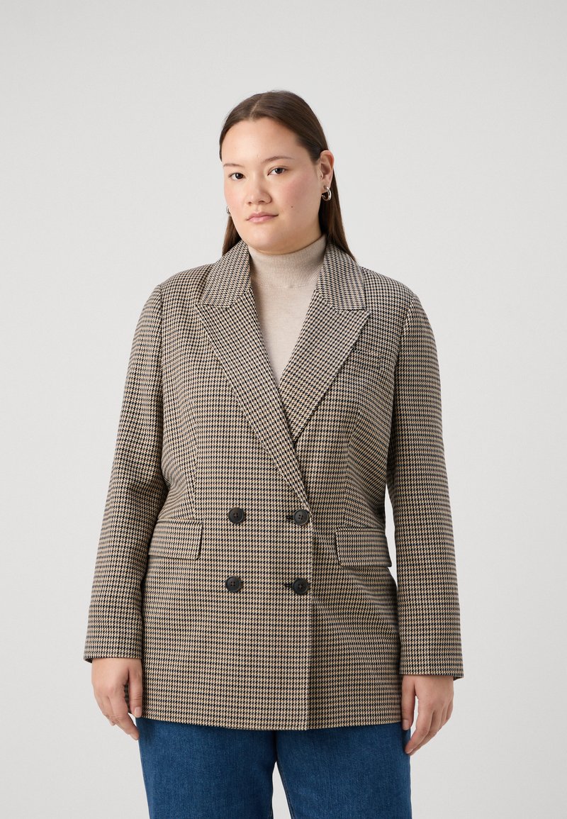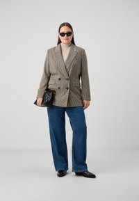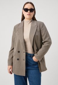 CARLETTIE LIFE LOOSE CHECK - Halflange jas - cloud dancer/cornet blue/night sky/peat