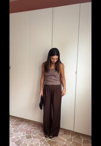 WIDE LEG SMART WITH DARTS - Broek - dark brown