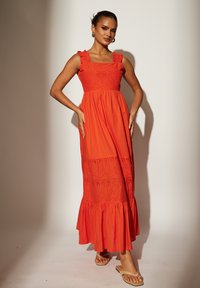 heart_outlinedSouth BeachBRODERIE TIE PALM MAXI - Maxi-jurk - orange€ 33,80Vorige laagste prijs:€ 84,52-60%DealVergelijkbaar