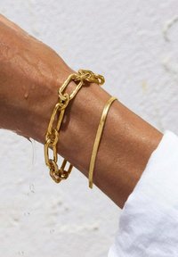 De Lisse S armband van verguld staal is ideaal voor de zomer. Deze platte ketting is waterdicht en geschikt voor elk zomerplan.