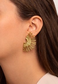 De waaiervormige knoopoorbellen gemaakt van staal en verguld in gouden kleur, ideaal voor een speciaal evenement of feest en om de perfecte gast te zijn.