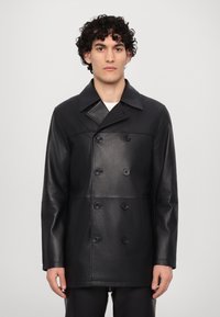 PAUL DOUBLE BREASTED JACKET DISTRESSED - Halflange jas - nappa black