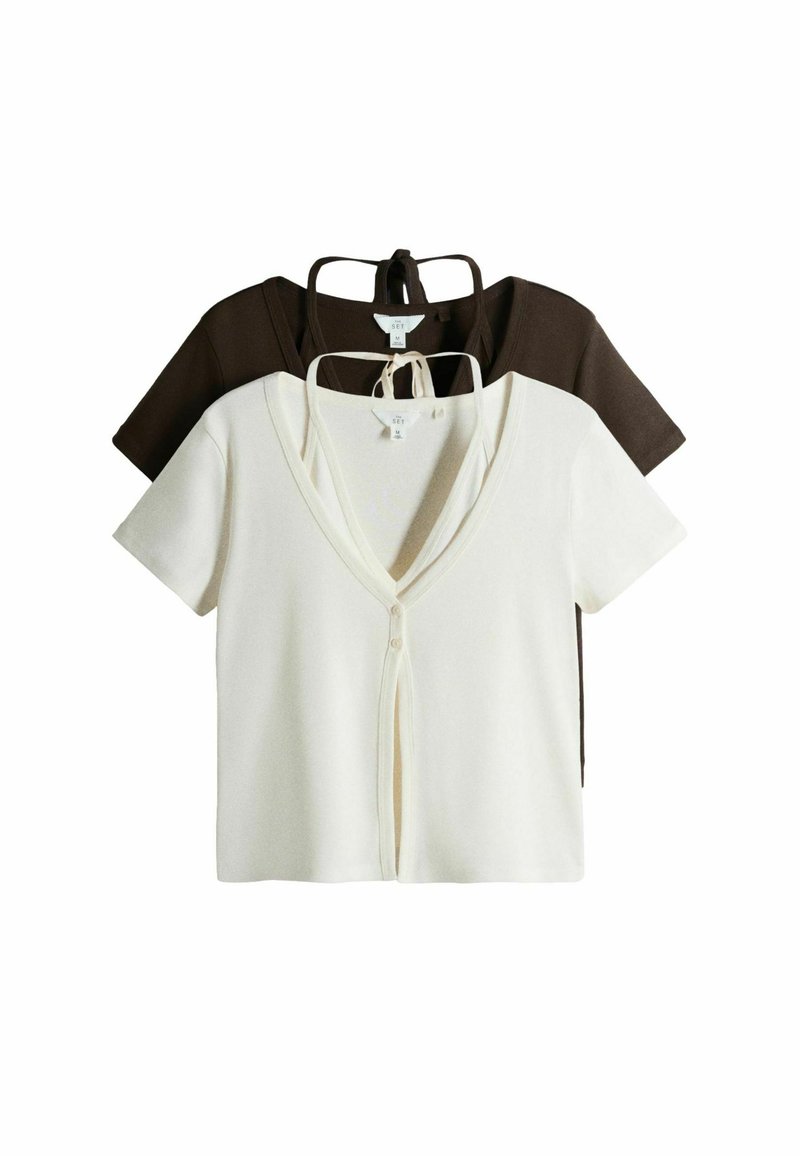 REGULAR FIT - 2 PACK MOCK HALTERNECK & T-SHIRT SETS . - Overhemdblouse - chocolate brown cream