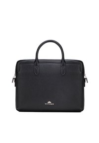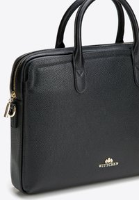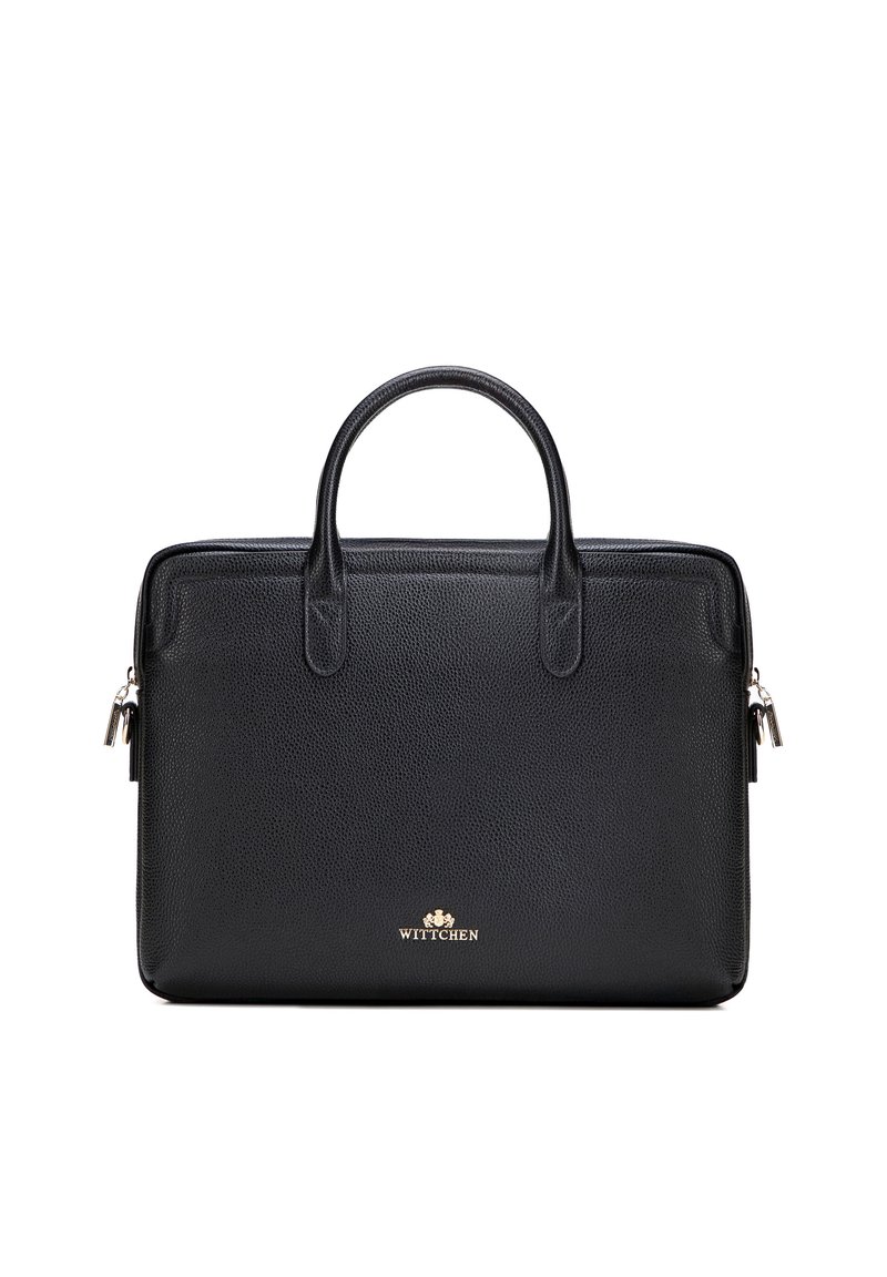 Zwarte leren aktetas met dubbele handvatten, ritssluitingen aan de zijkanten en een gouden Wittchen-logo centraal op het voorpaneel.